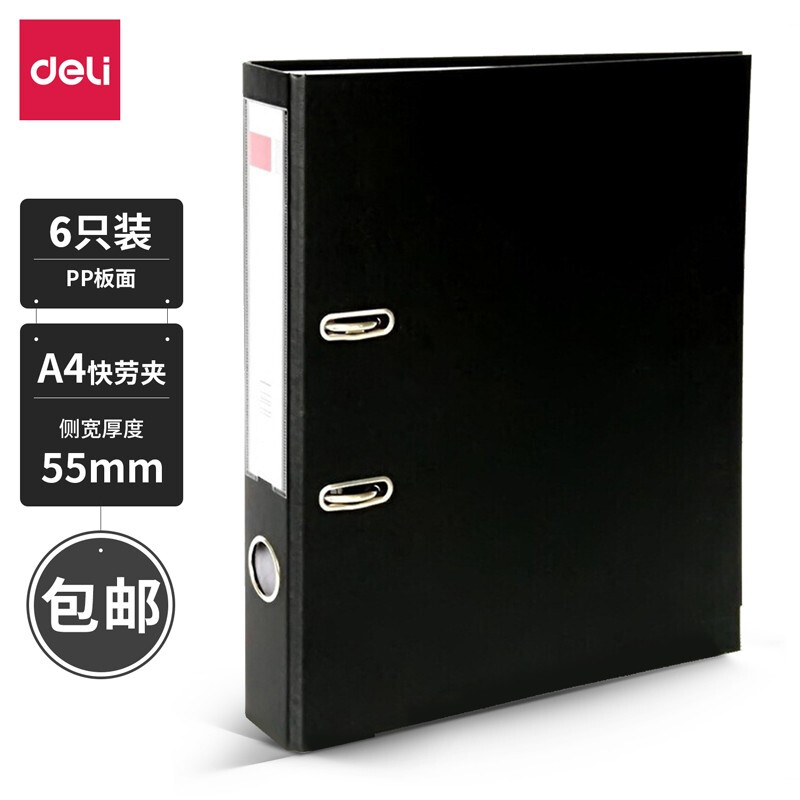 得力(deli)欧式带孔A4快劳夹活页夹打孔夹 5481 背宽55mm 黑色