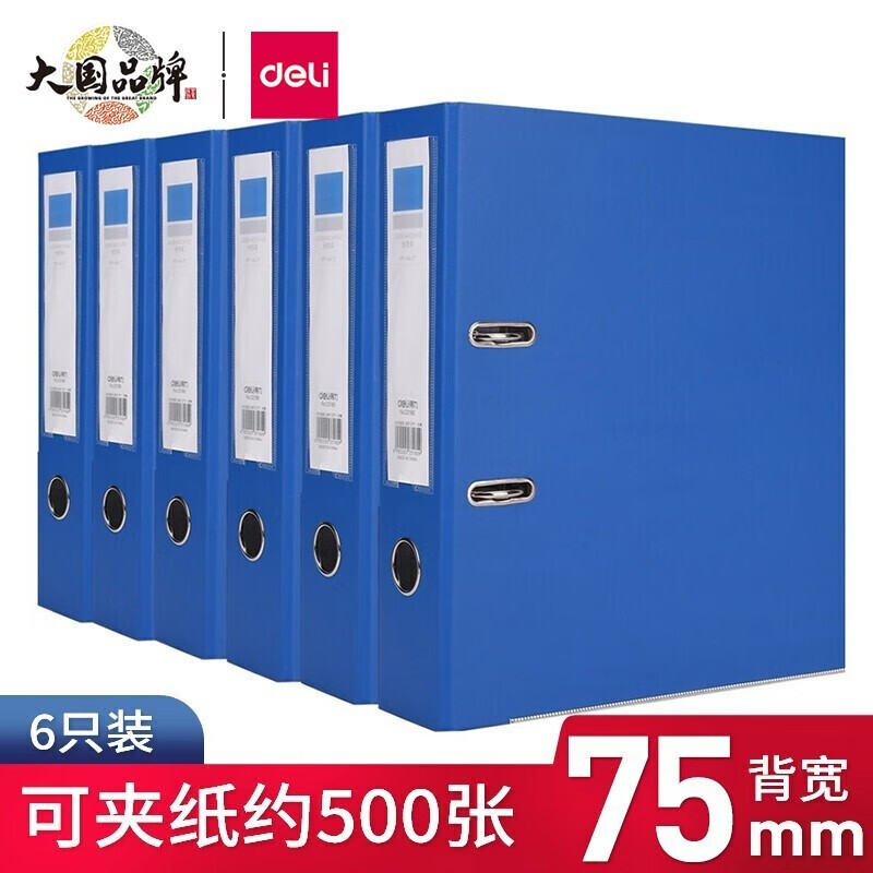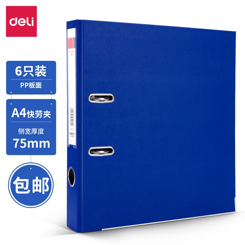 得力(deli)欧式带孔A4快劳夹活页夹打孔夹 5480 5481 背宽75mm 蓝色六个装