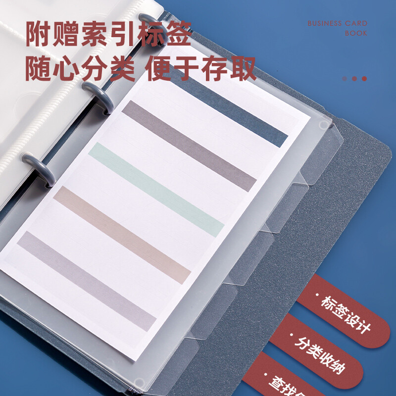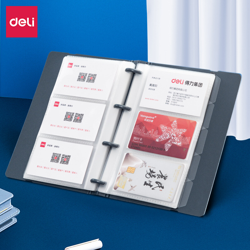 得力(deli)活页带捆绳名片册 名片夹(180枚) 蓝色 5778