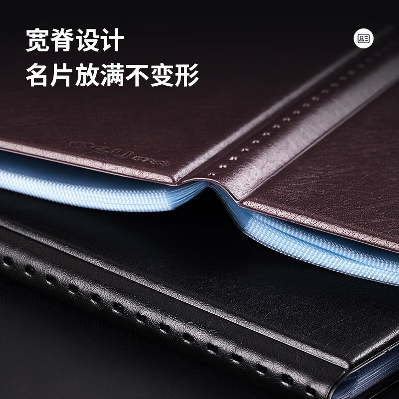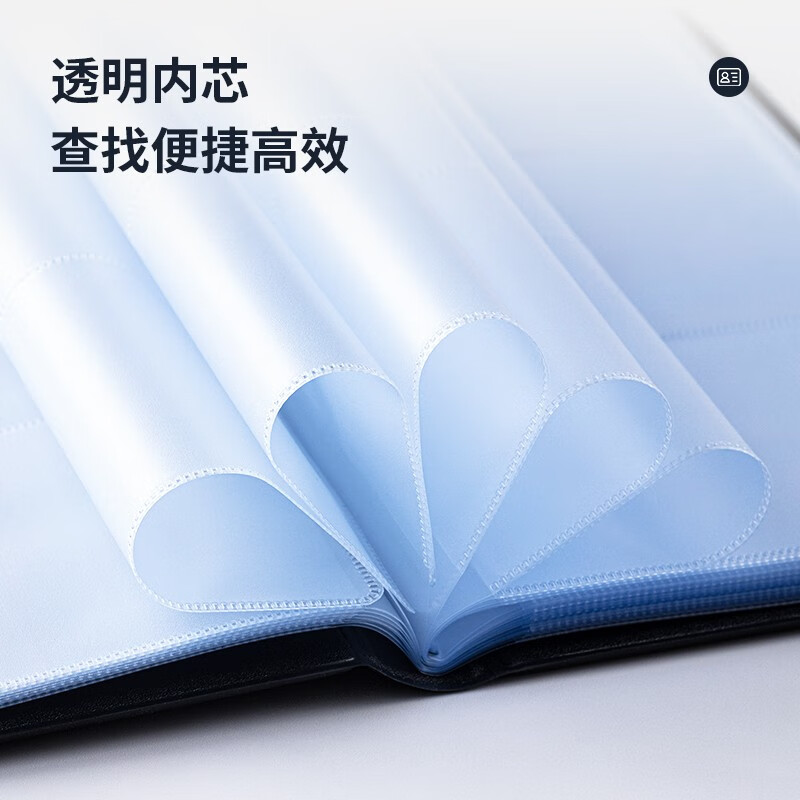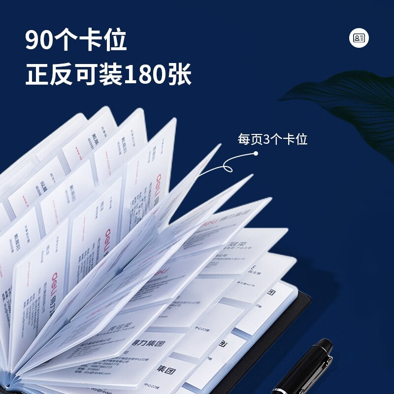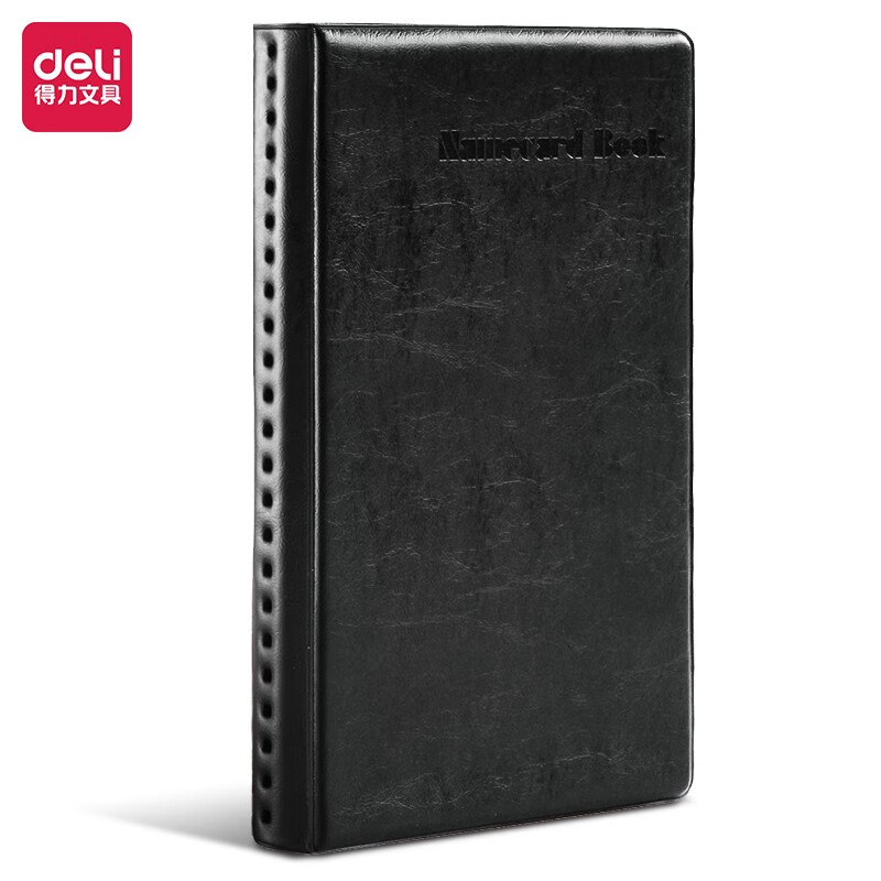 得力(deli)5783摊开式硬皮名片册 商务便携名片收纳夹 黑色(180枚)