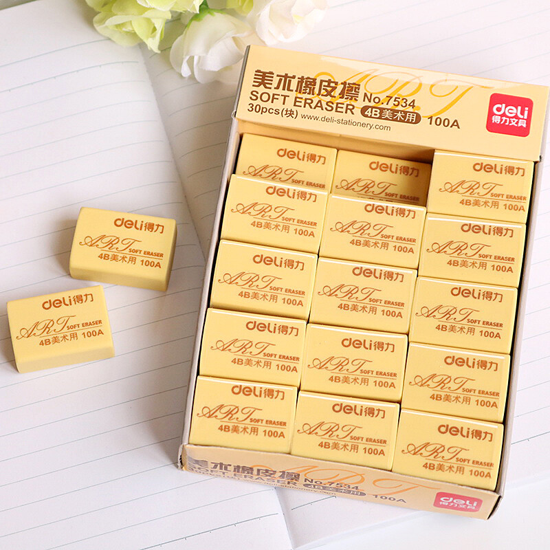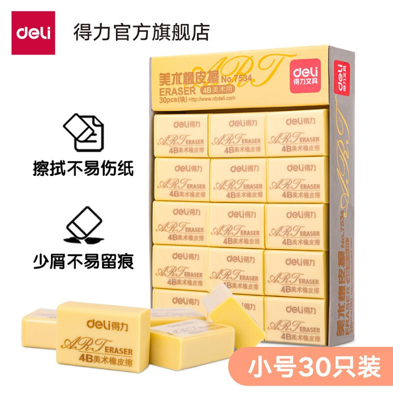 得力(deli)橡皮擦 学生考试绘图美术橡皮擦 (4B)黄色小号7534