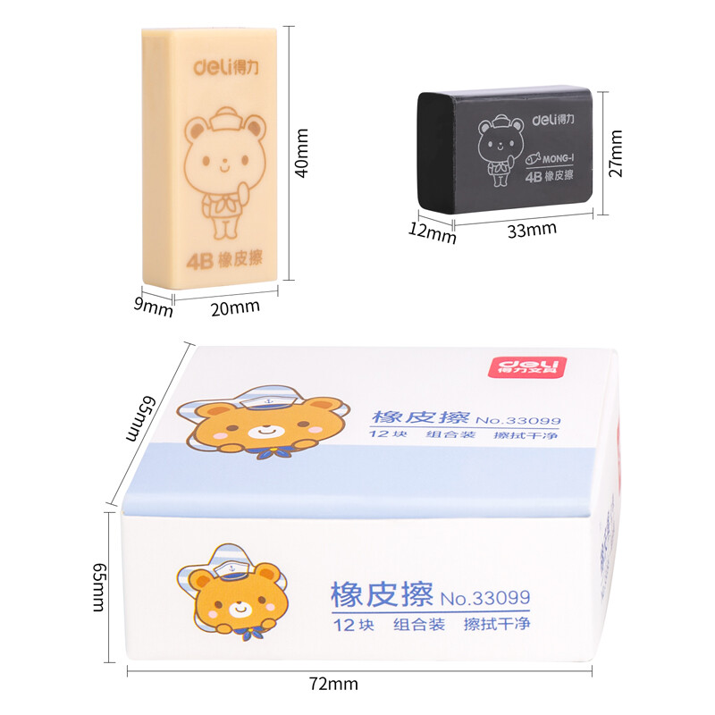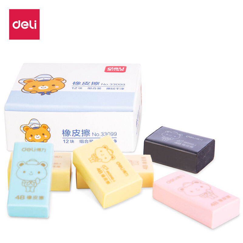 得力(deli)学生考试绘图美术橡皮擦 学生用品 居家学习用品 开学推荐 33099 多色装12块
