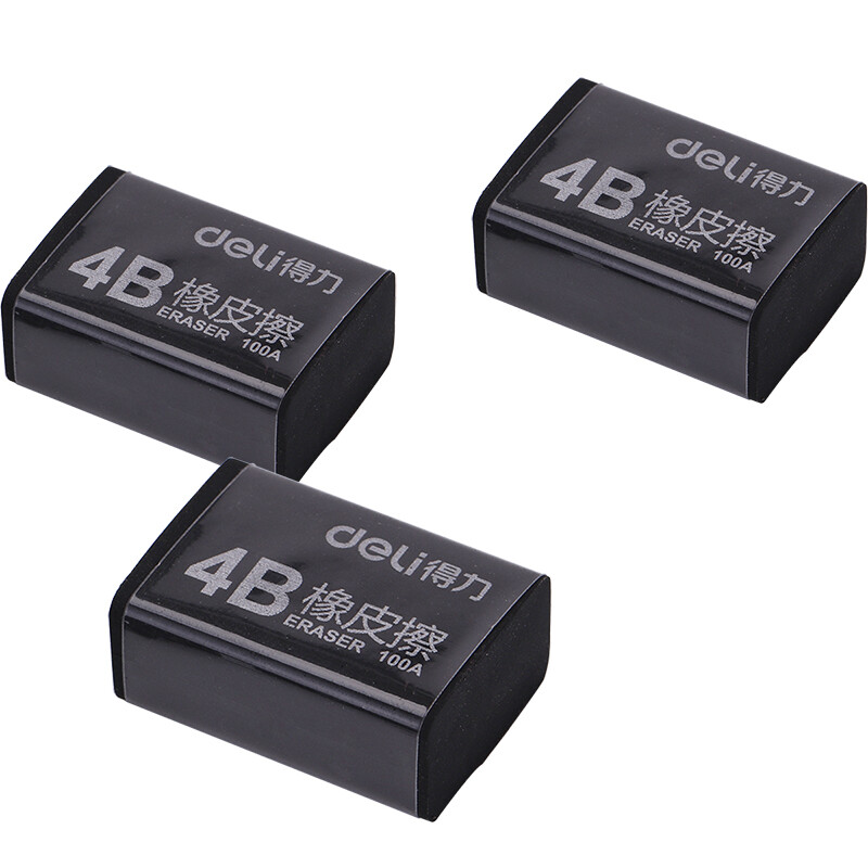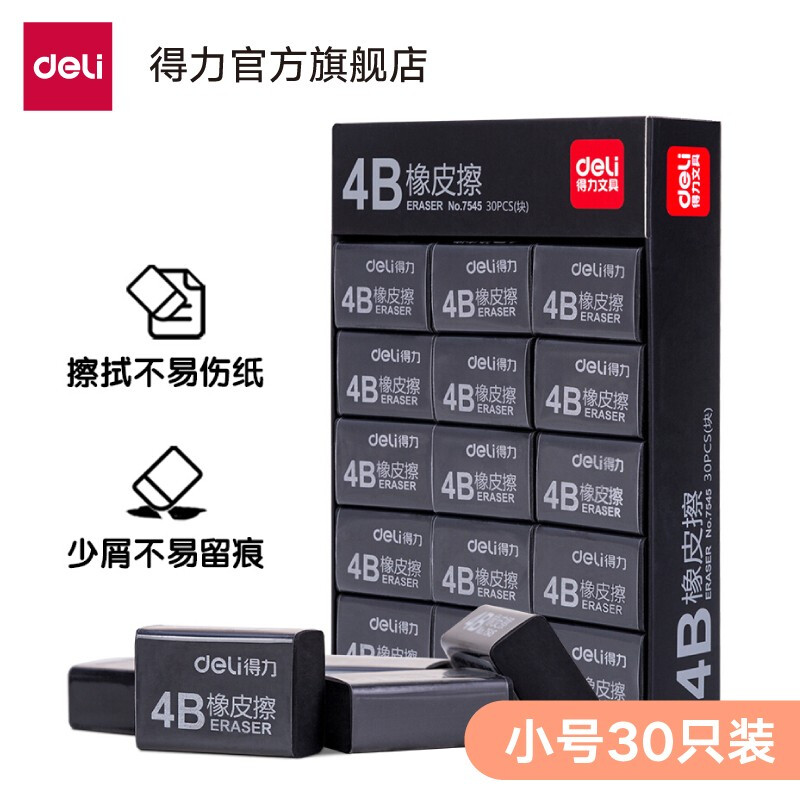 得力(deli)学生橡皮擦 彩色橡皮 学生考试绘图美术橡皮擦 学生用品 居家学习用品 开学推荐 7545(4B)黑色小号 30块