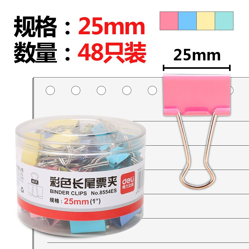 得力(deli)彩色长尾夹8554ES【25mm】(48只/筒)