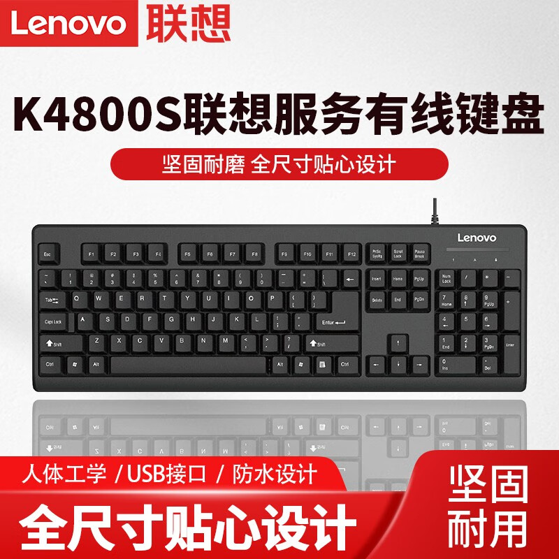 联想(Lenovo)USB接口 轻薄耐用 黑色K4800S有线键盘