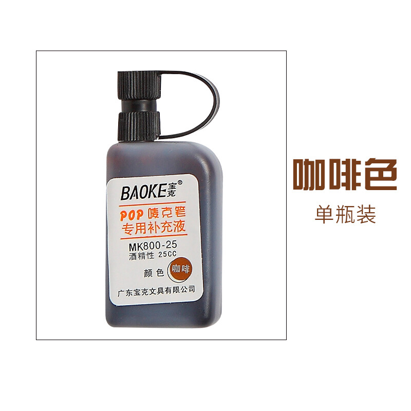 宝克(BAOKE)麦克笔专用补充液MK800-25海报笔墨水POP笔 咖啡色