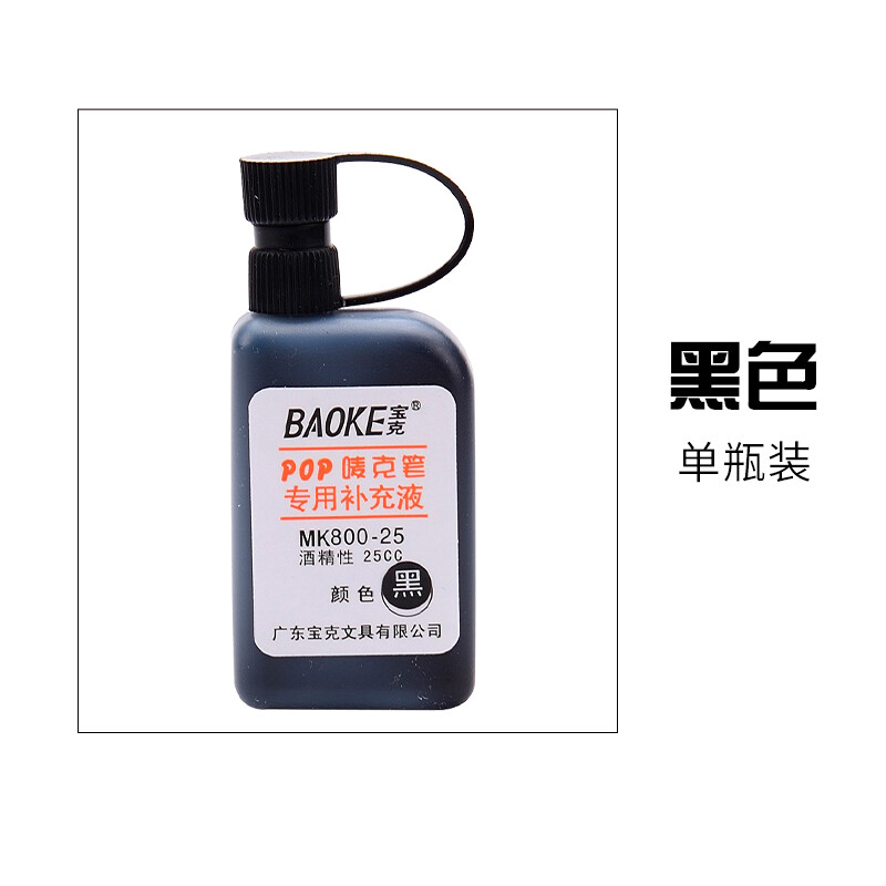 宝克(BAOKE)麦克笔专用补充液MK800-25海报笔墨水POP笔 黑色