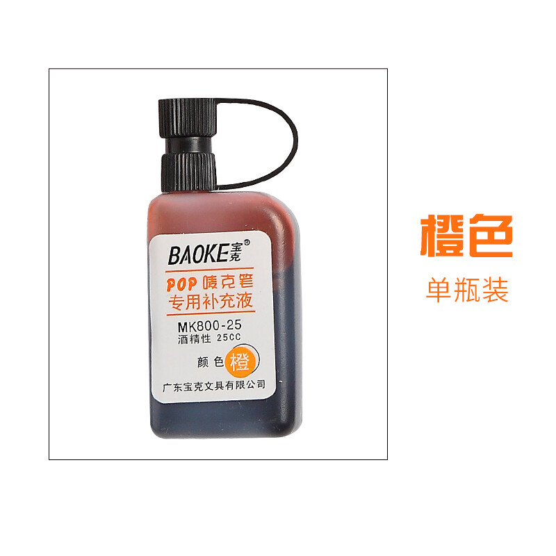 宝克(BAOKE)麦克笔专用补充液MK800-25海报笔墨水POP笔 橙色