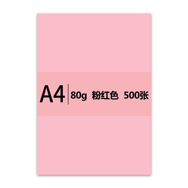 传美 国产色纸 A4 彩色复印纸 80g 500张每包 粉红色 五包整箱装