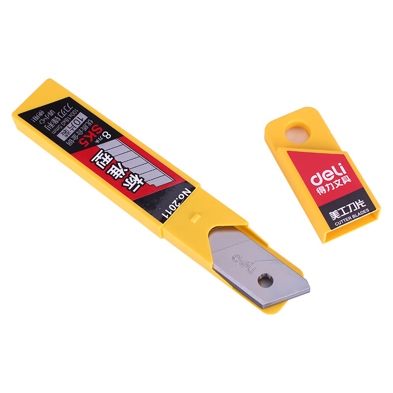 得力(deli)8刀头SK5合金钢大号美工刀片 (10片/盒)便携装 2011
