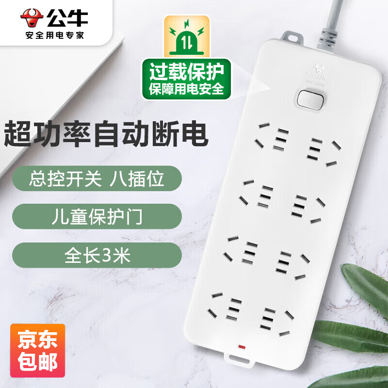 公牛(BULL)GN-217 插座/接线板/拖线板 8位总控全长3米