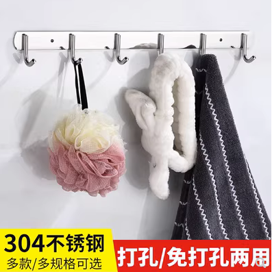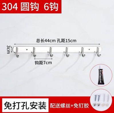 免打孔304不锈钢粘钩衣钩排钩衣服衣帽钩 6钩