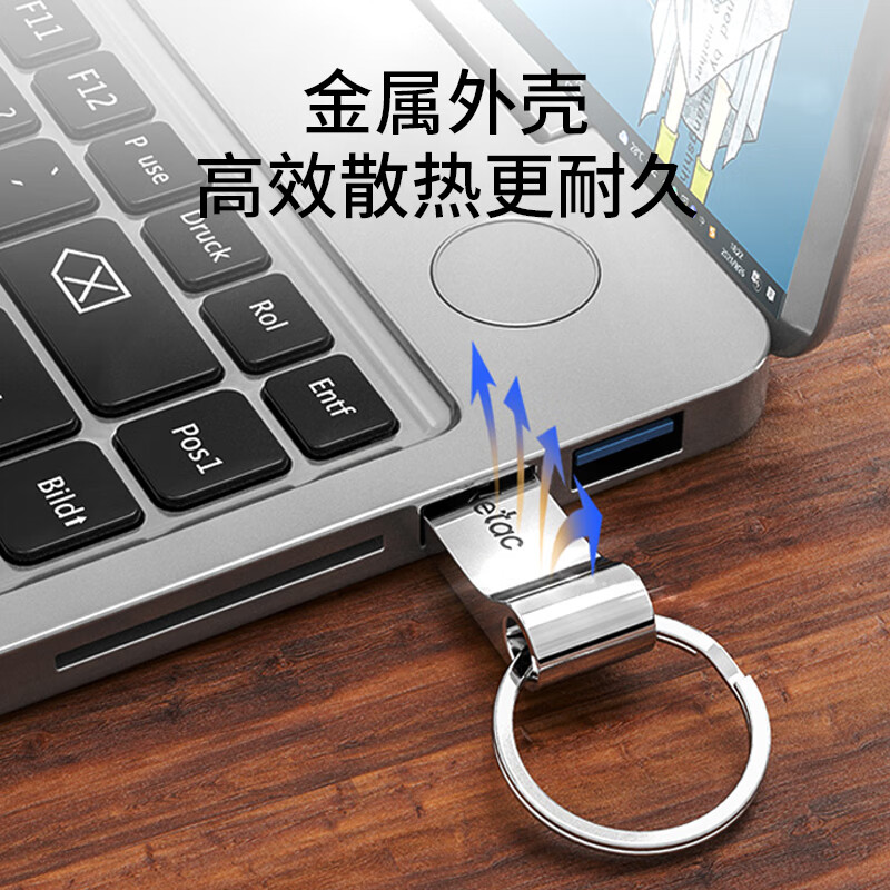 朗科(Netac)32GB USB2.0 U盘U275银色 钥匙圈加密U盘