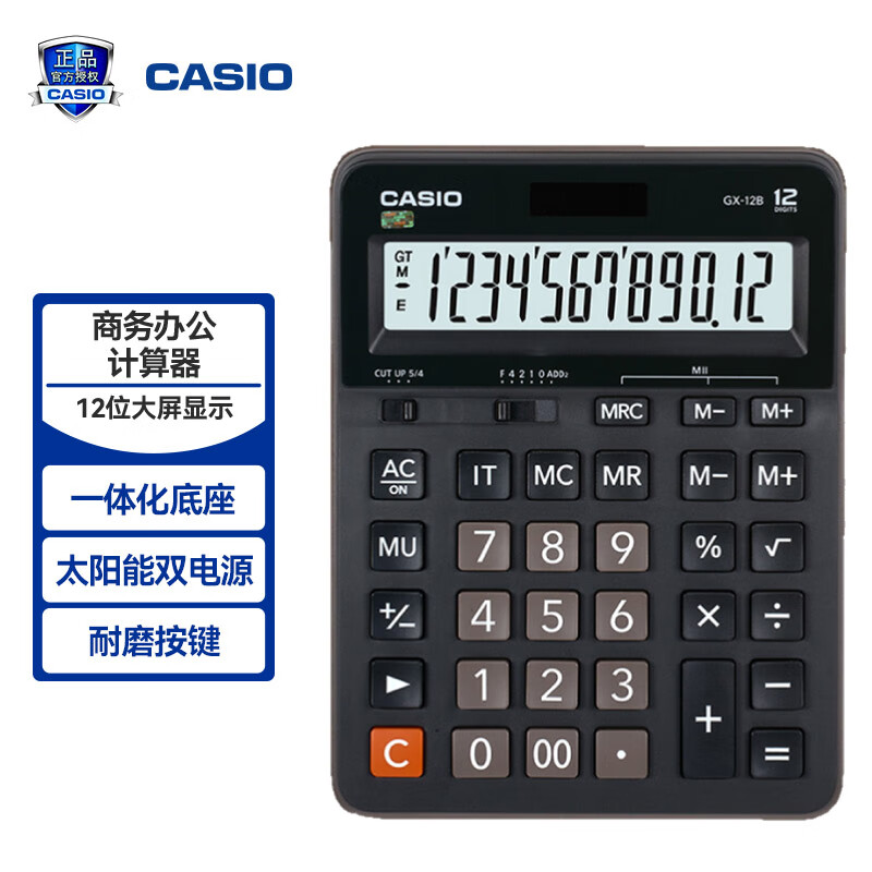 卡西欧(CASIO)GX-12B 商务计算器 大号黑色