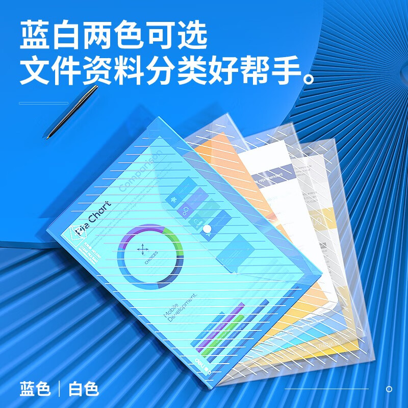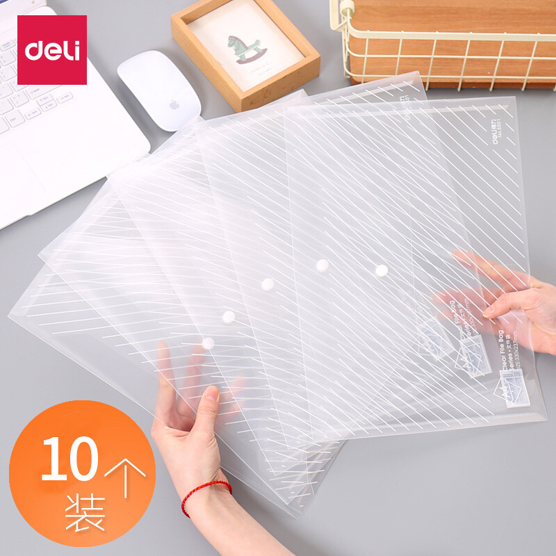 得力(deli) A4透明纽扣袋 按扣袋斜条 10只装5501