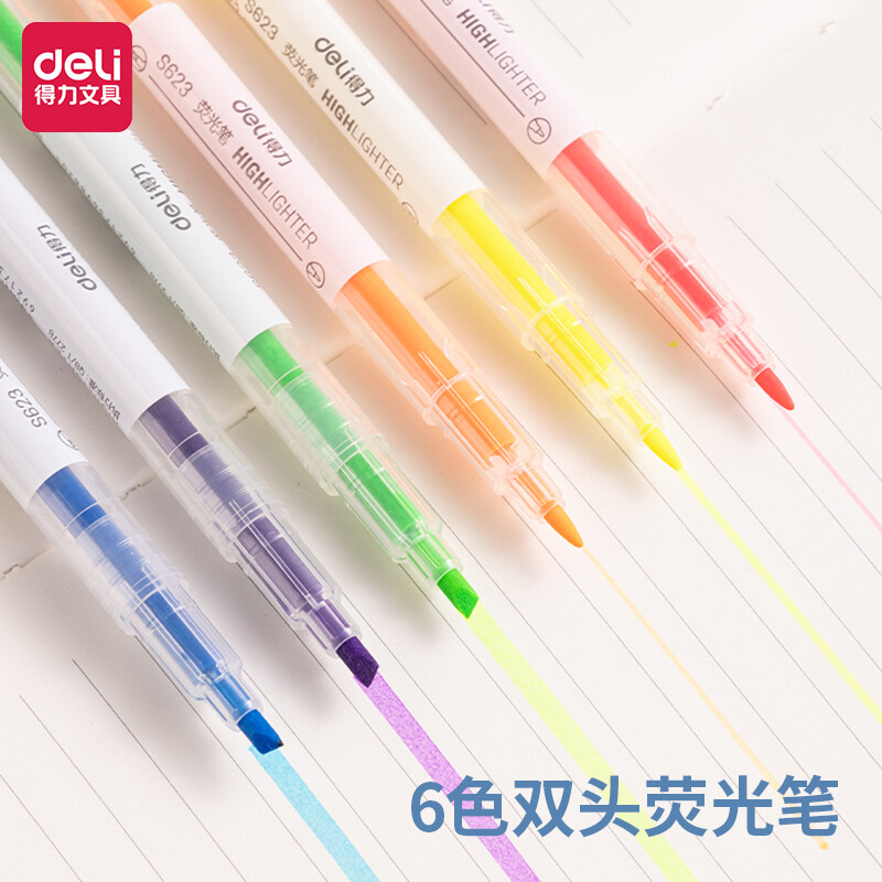 得力(deli)6色双头荧光笔套装 水性记号笔 S627(6支/袋)