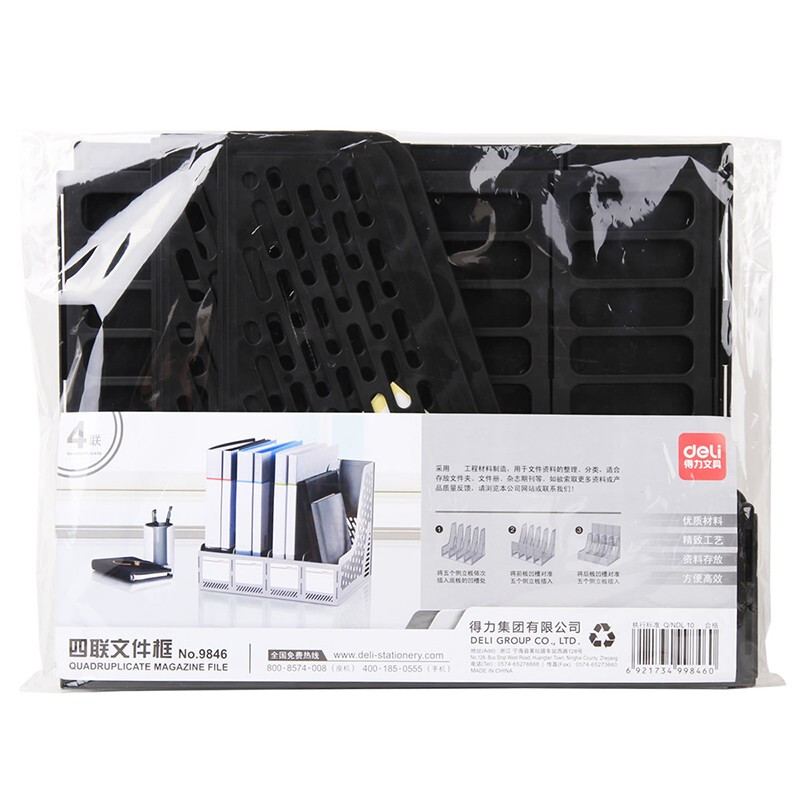 得力四联文件筐9846(黑色) 桌面资料架 四格文件栏