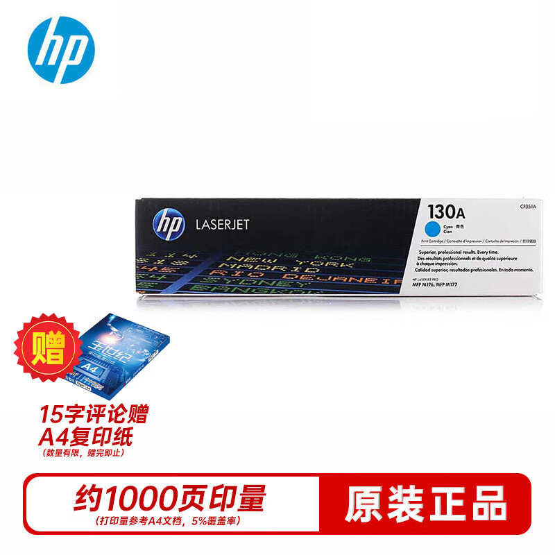 惠普(HP)CF351A 130A 原装青色硒鼓(适用M176n M177fw)约1000页 打印机硒鼓