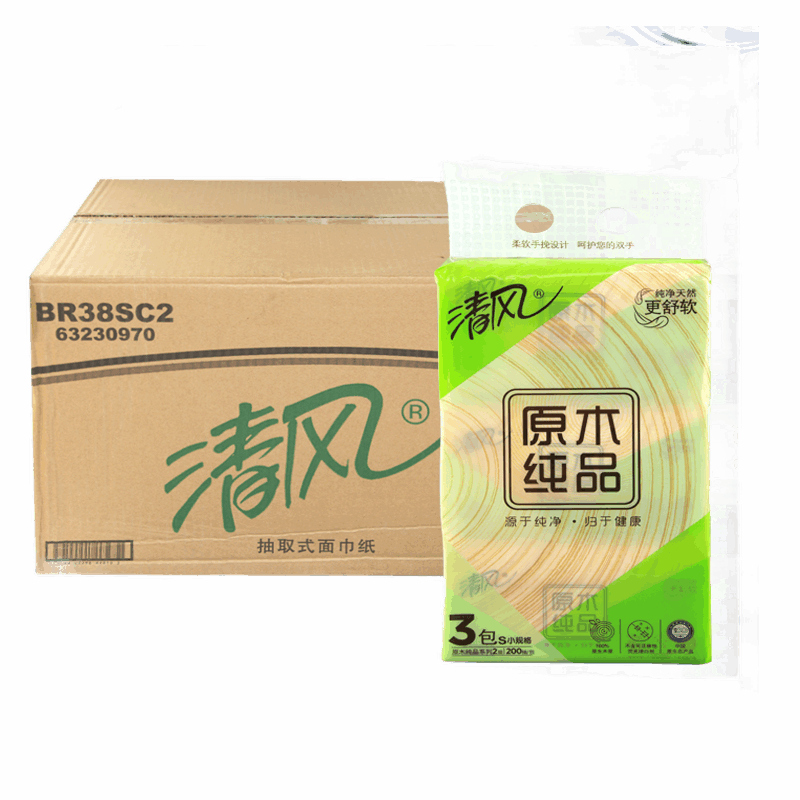 清风 经典商用2层200抽全木浆纸巾 BR38SC2