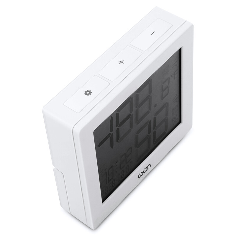 得力(deli)LCD带时间闹钟电子温湿度计 白色8813