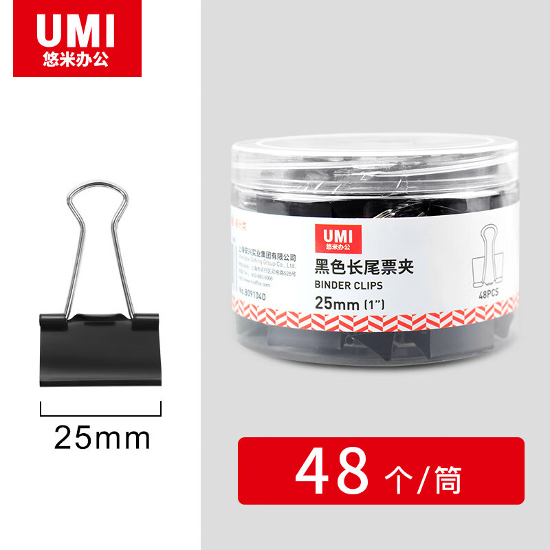 悠米 长尾夹B09104D(25mm)黑色 48个/筒