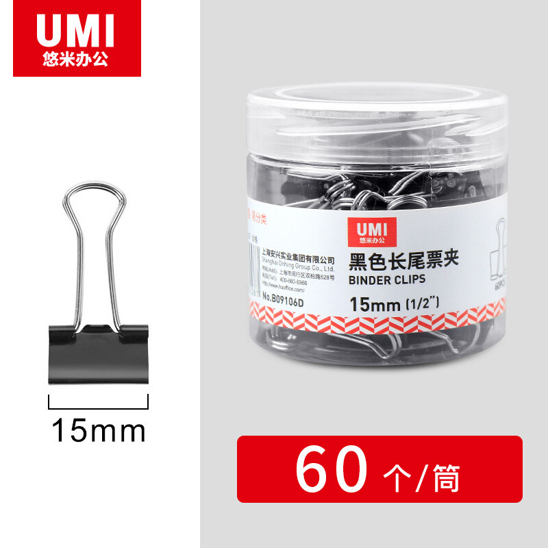 悠米 长尾夹B09106D(15mm)黑色 60个/筒