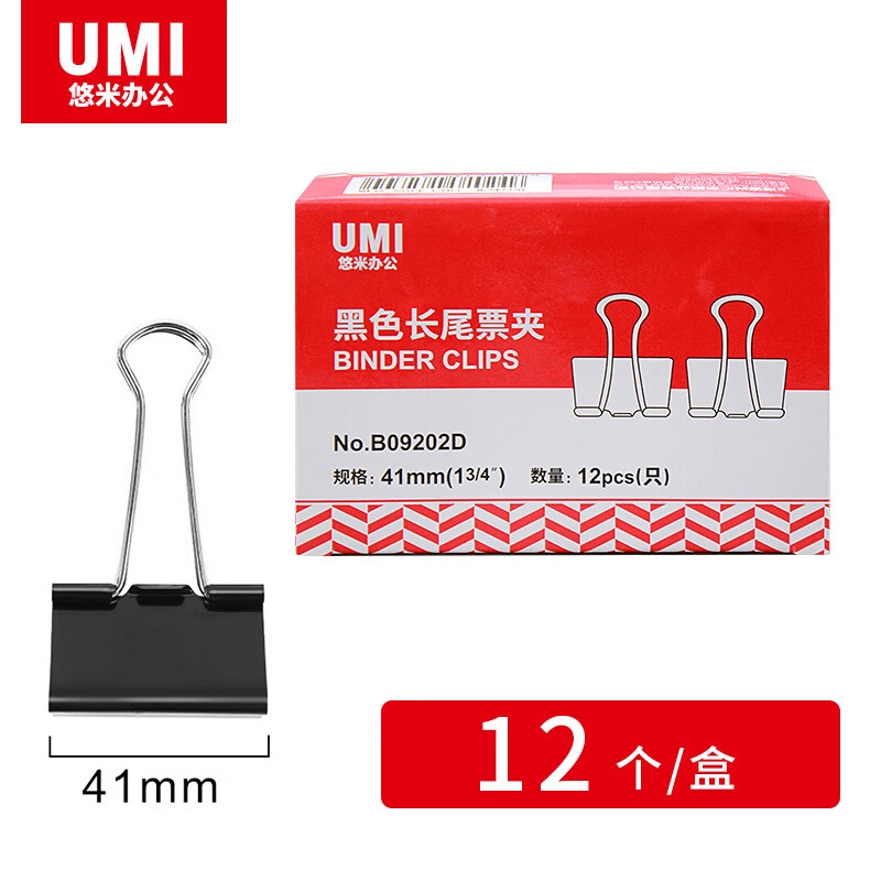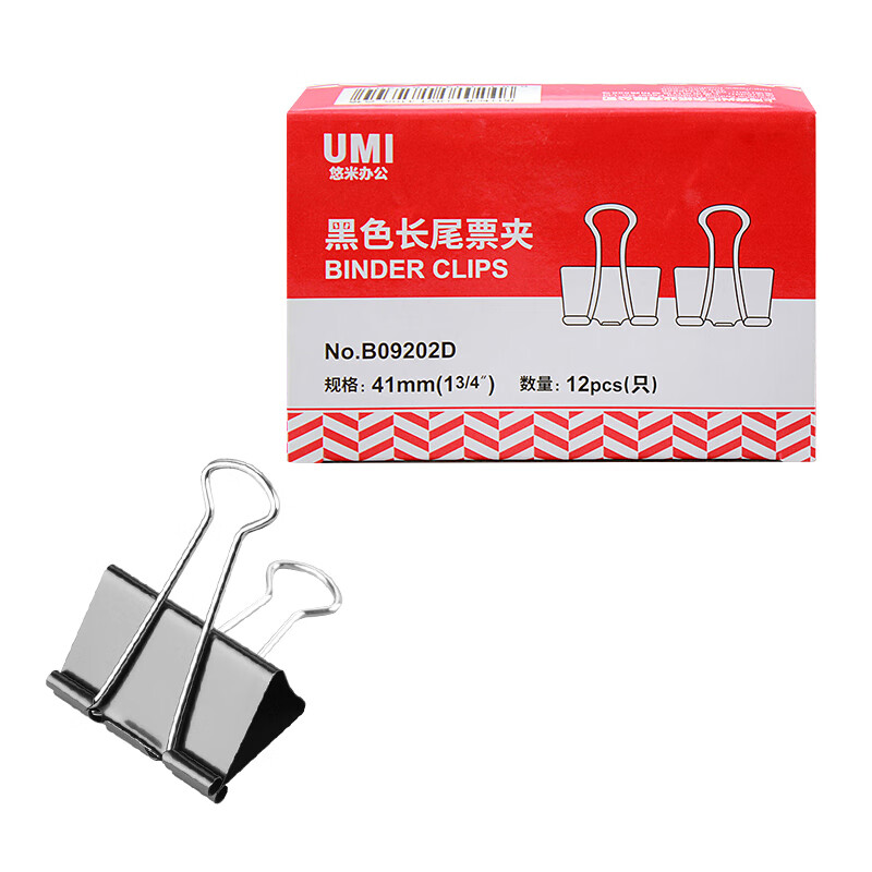 悠米 长尾夹B09202D(41mm)黑色 12只/盒
