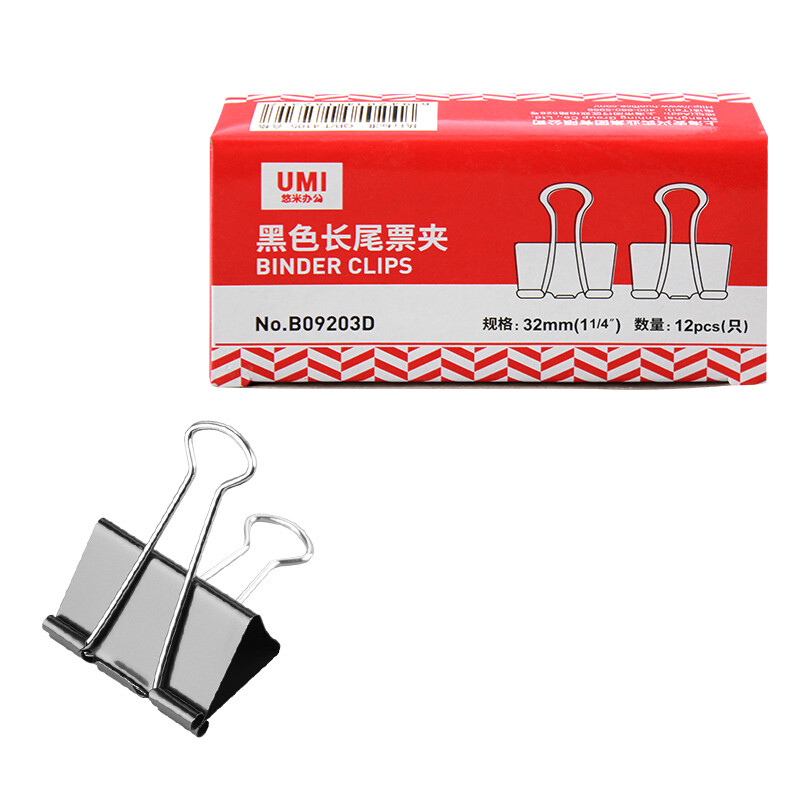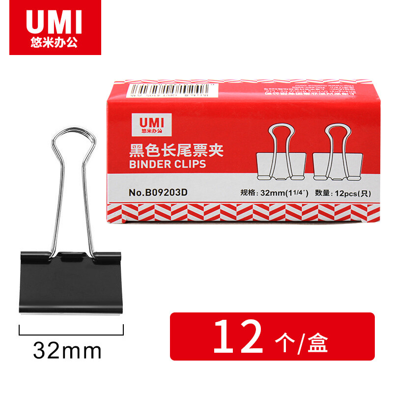 悠米 长尾票夹B09203D(32mm)黑色 12只/盒