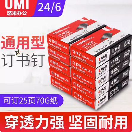 悠米 统一订书针B10002S银24/6 12号(订25张)