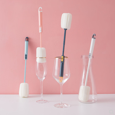 加长柄海绵刷子可调节伸缩开水壶保温瓶 杯刷 清洁刷 蓝色