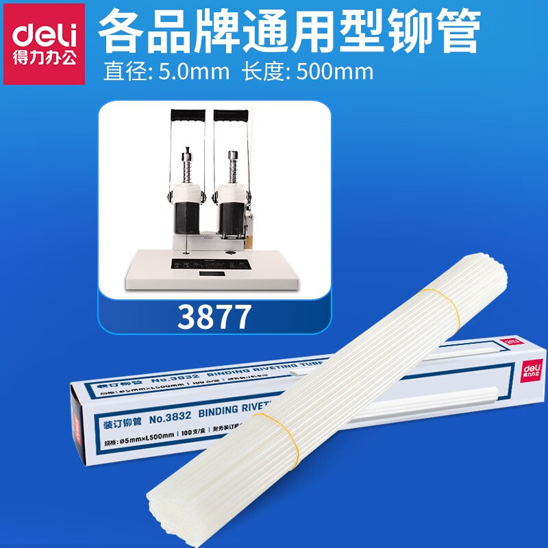 得力财务凭证装订机透明尼龙铆管 热熔胶管100支/盒 3832(φ5*500mm)