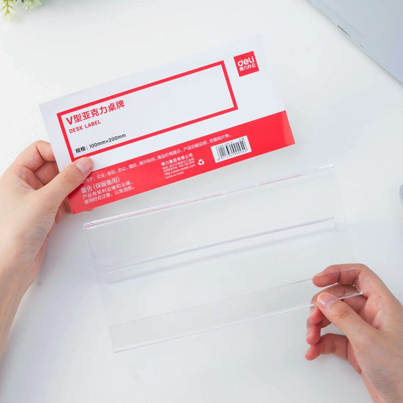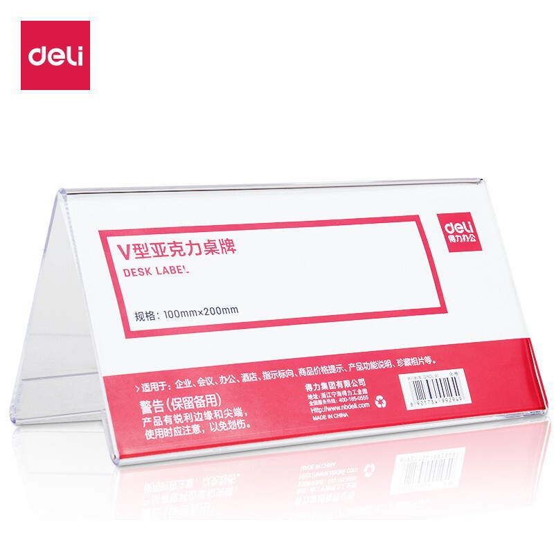 得力(deli) 桌牌透明V型亚克力三角立牌标识牌双面台卡 十个装(200*100mm)50874