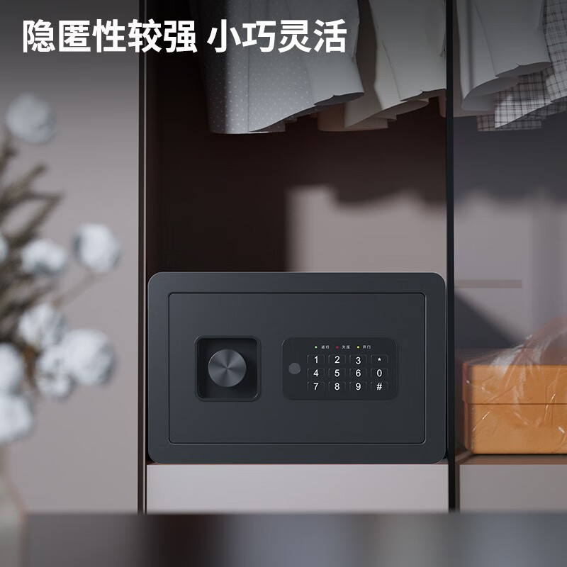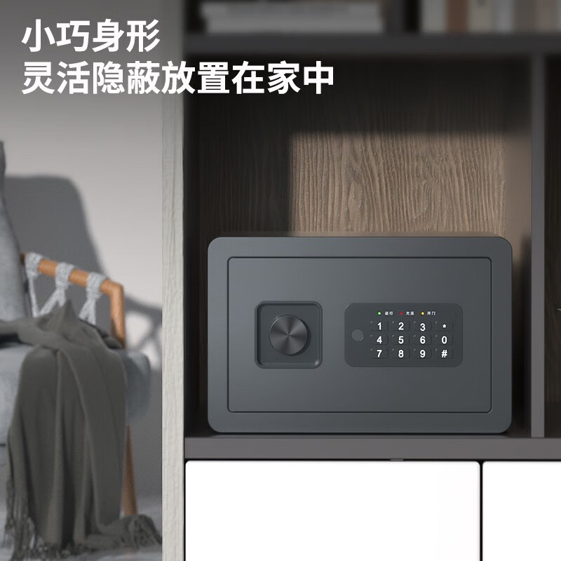 得力(deli)全钢结构电子密码保管箱 办公家用防盗 小型隐形保管柜 可入墙 高20cm 【黑色】AE515