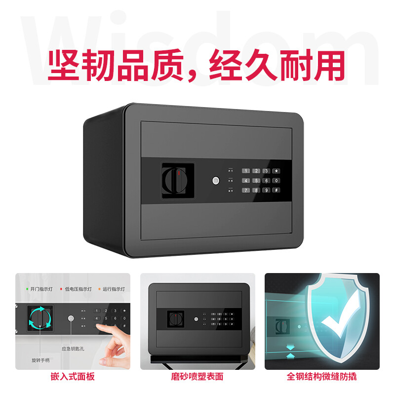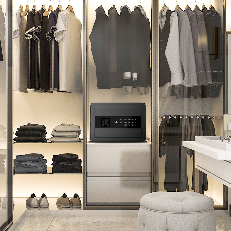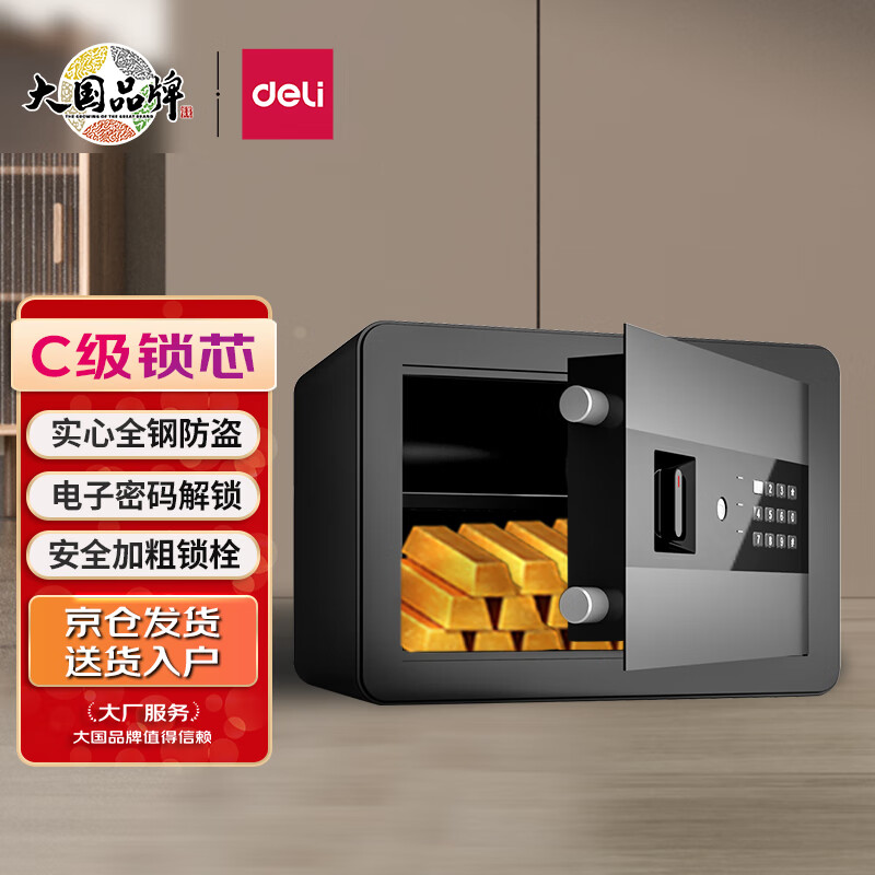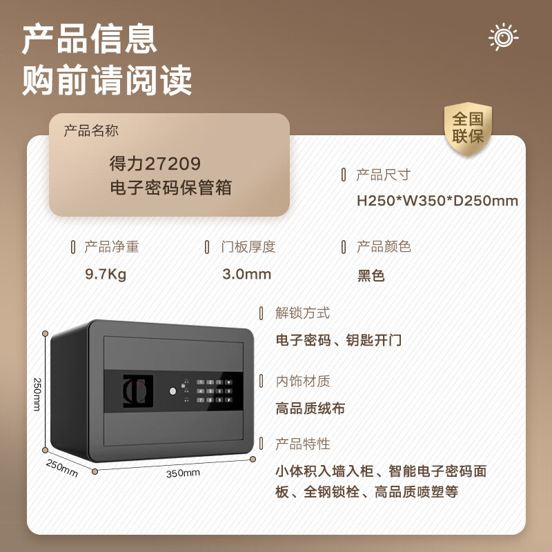 得力保险柜 办公家用电子密码保管箱小型入墙入柜私密箱隐藏保密柜 可固定安装 纯平面板不突兀 25cm磨砂黑