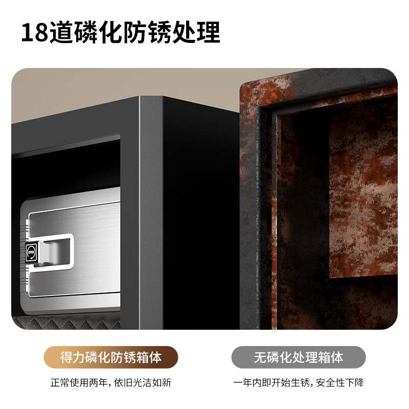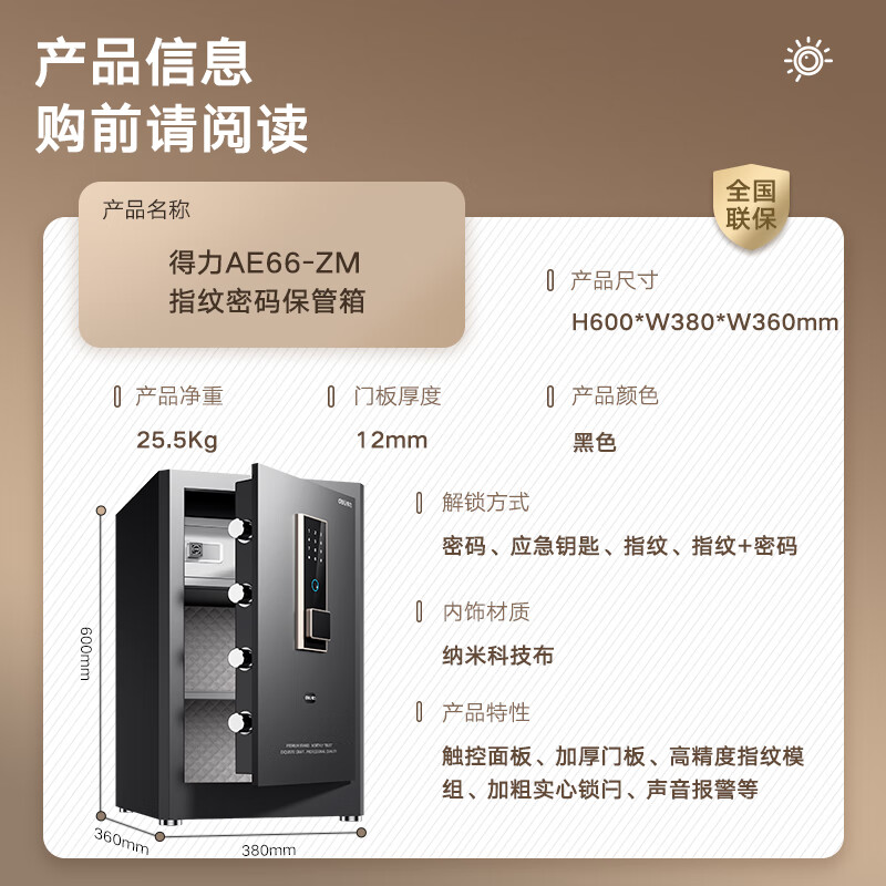 得力指纹密码保险箱小型全钢防盗可入墙入柜保险箱60cm曜岩黑弘雅系列