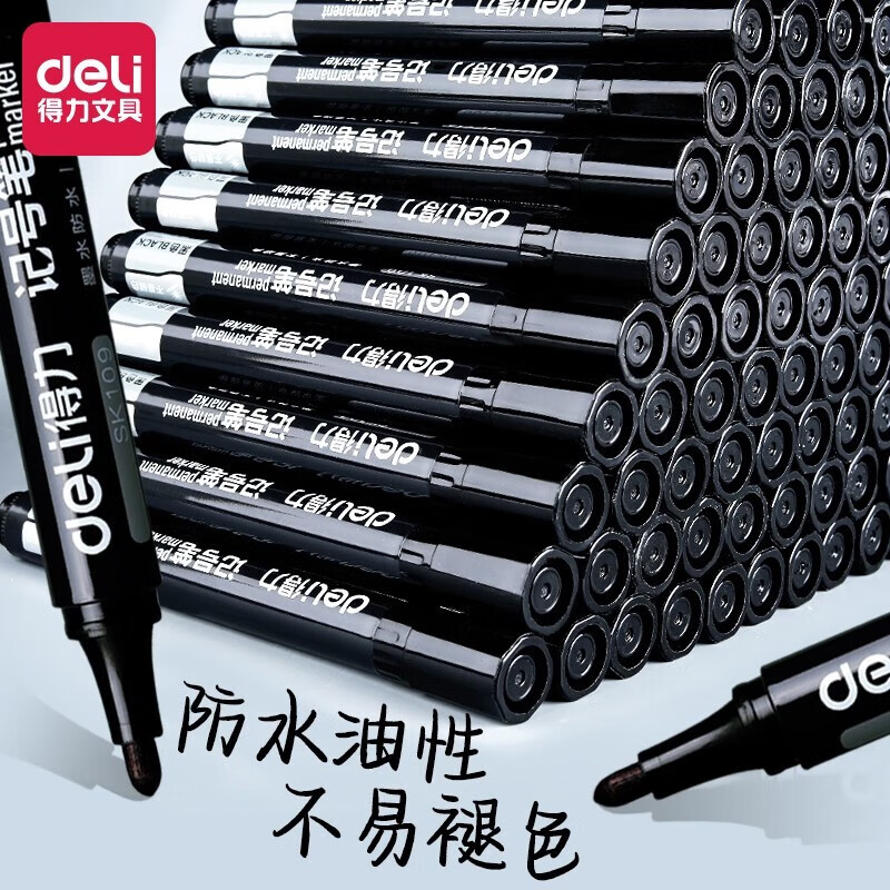 得力SK109记号笔油性防水不易褪色粗头马克笔快递物流大头笔 黑色