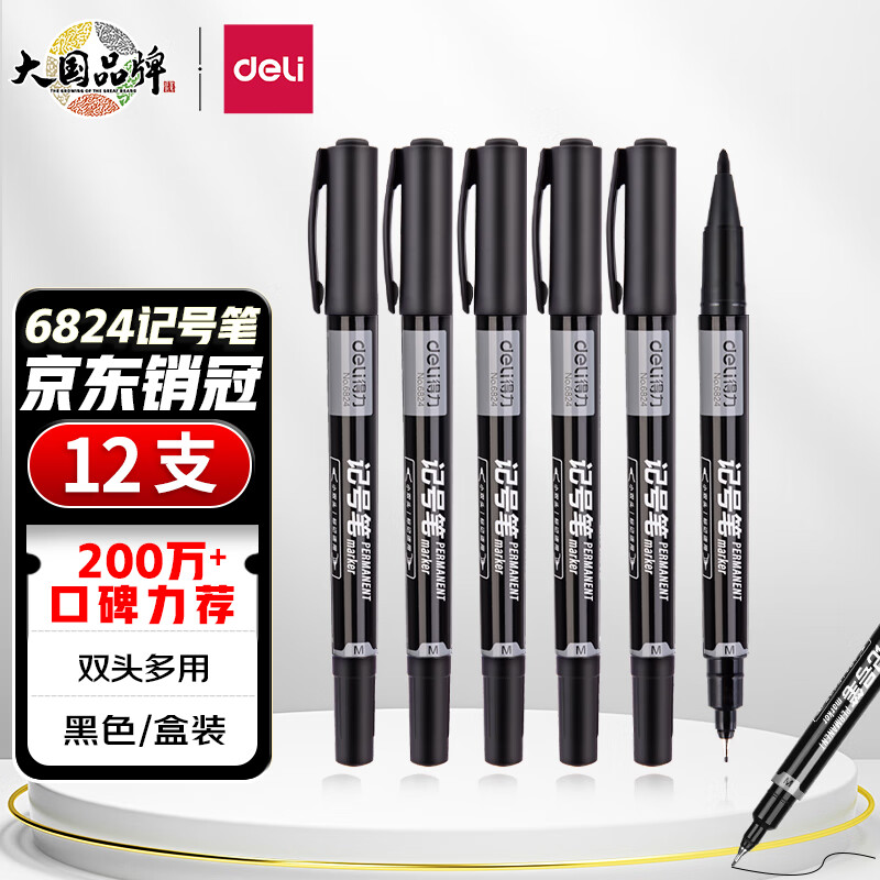 得力小双头油性记号笔6824 黑色