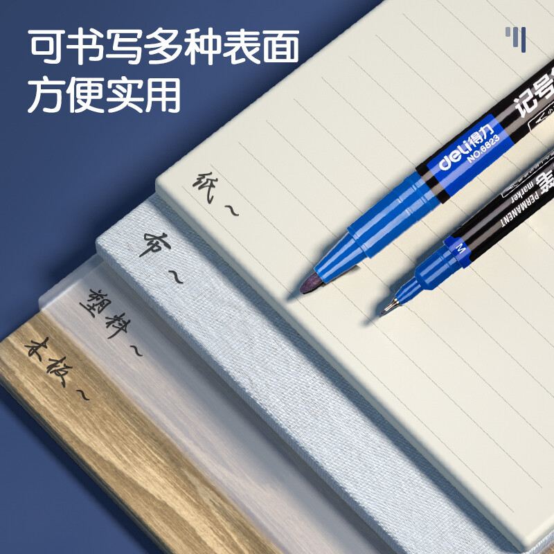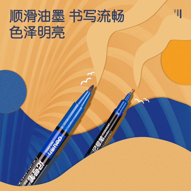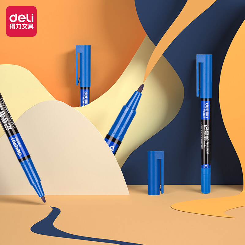 得力(deli) 小双头多用记号笔签字笔 勾线笔会议笔马克笔 双头勾线笔儿童学生 12支/盒 蓝色 6823