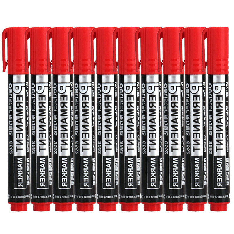 得力(deli)记号笔 s552 红色 可加墨油性笔 不可擦