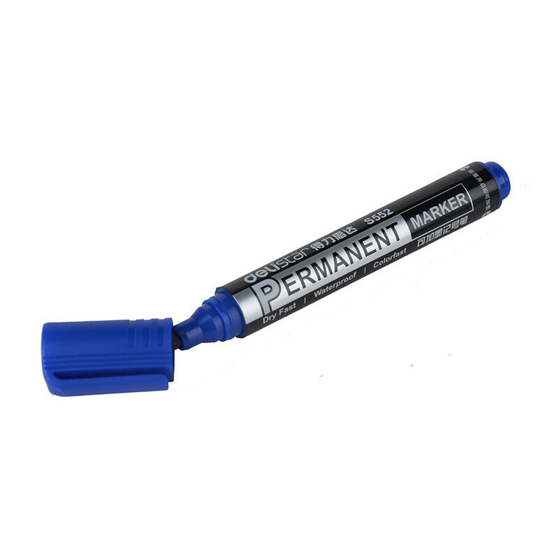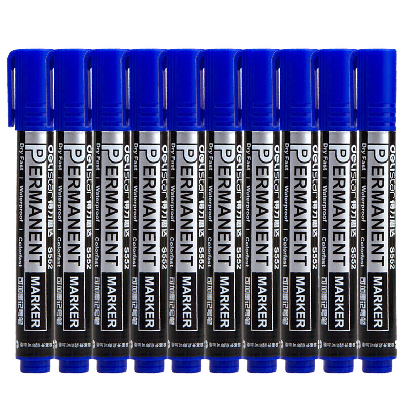 得力(deli)记号笔 s552 蓝色 可加墨油性笔 不可擦
