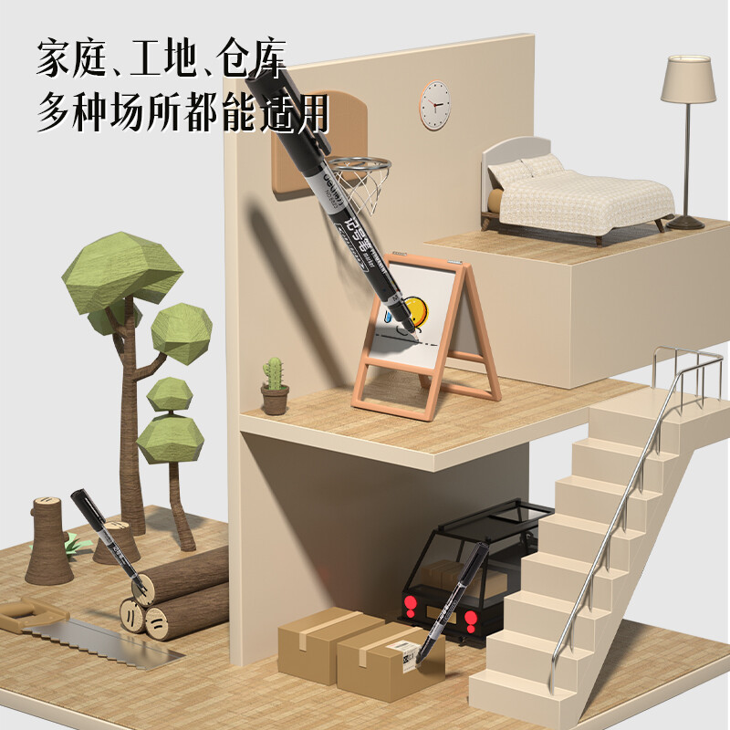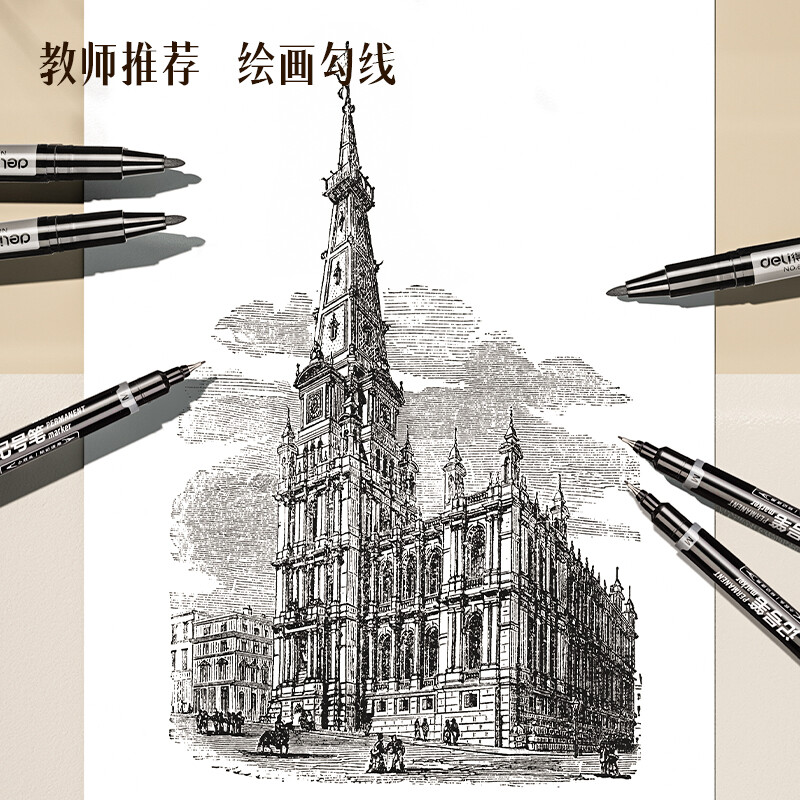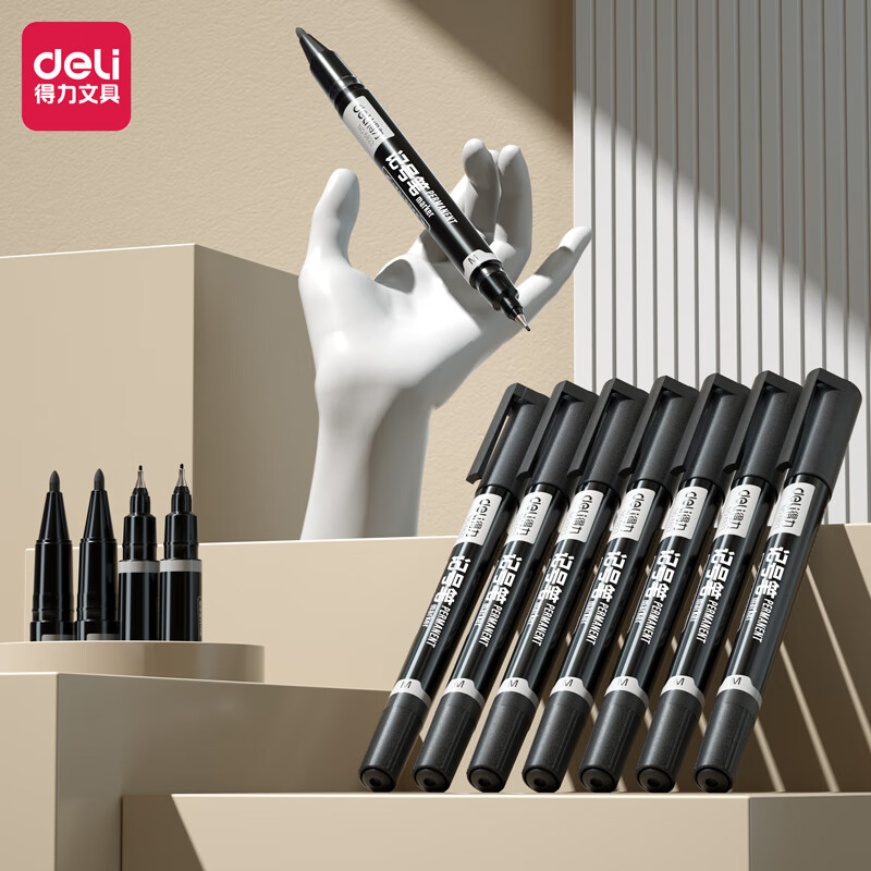 得力(deli) 小双头多用记号笔签字笔 勾线笔会议笔马克笔 双头勾线笔儿童学生 12支/盒 黑色 6823