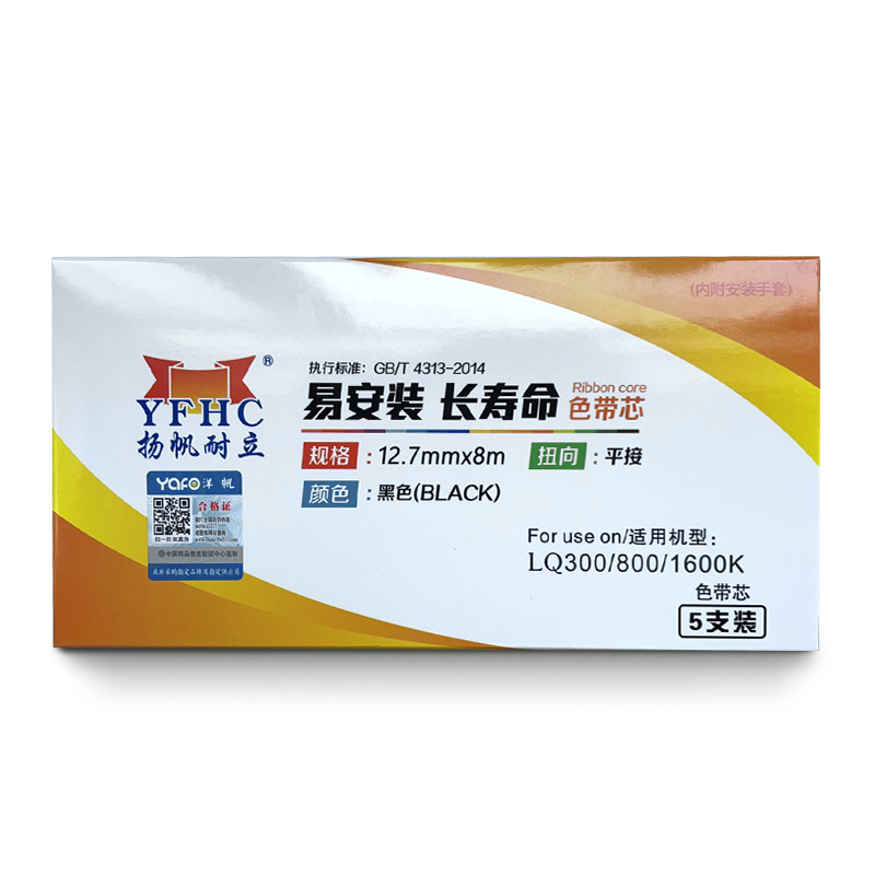 扬帆耐立 LQ300/800/1600K 色带芯 5支装/盒 黑色 12.7mm*8m(平)*5适用爱普生EPSON LQ1600K LQ300 800