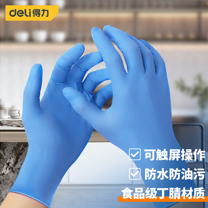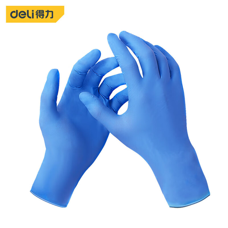 得力(deli) 一次性丁腈手套食物级劳保餐饮工业清洁高弹性 DL521301M蓝色