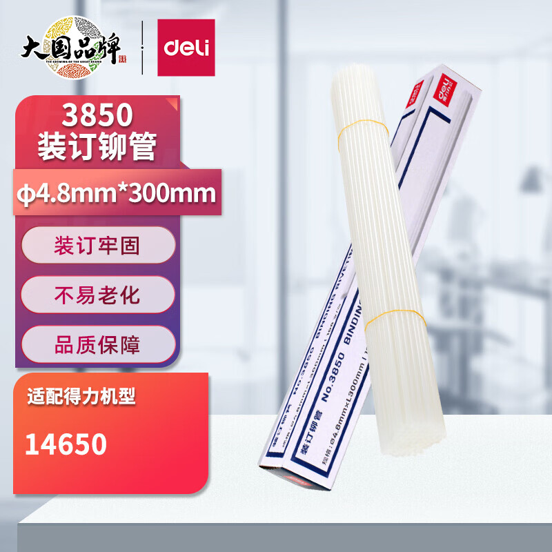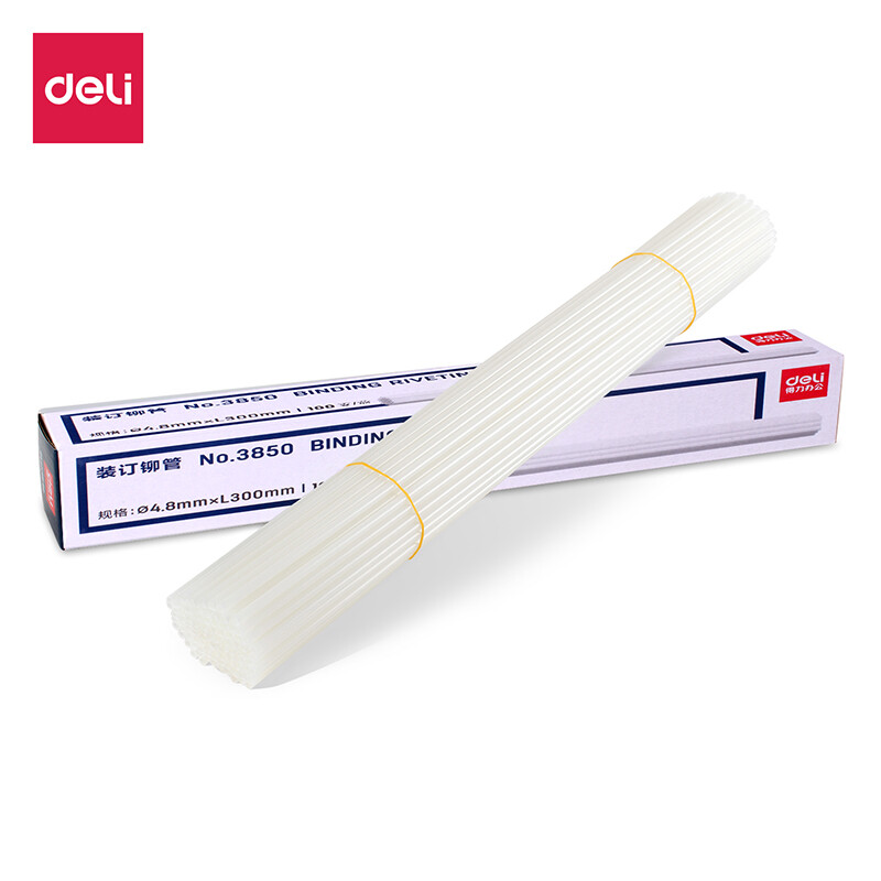得力(deli)3880财务装订机专用透明装订铆管Φ4.8*300mm(100根/盒)