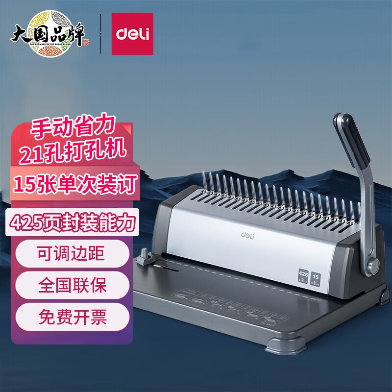 得力(deli) 21孔文件打孔装订机 手动胶圈夹条打孔机 手动省力(15张/次)3872