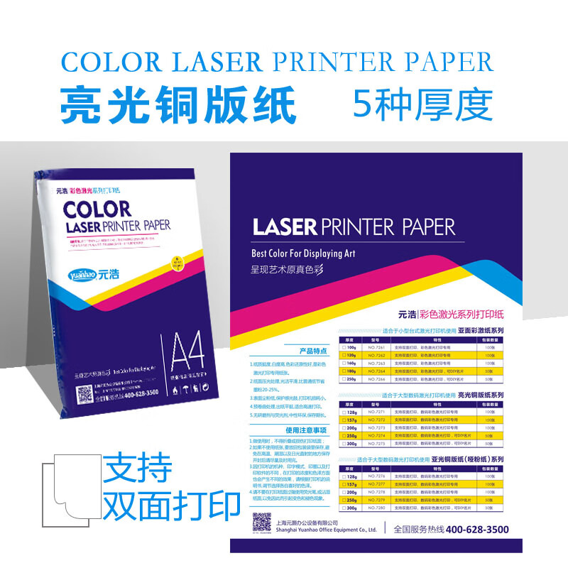 元浩 高光铜版纸 相片纸光面封面纸白色A4卡纸 A4 200G 100张/包