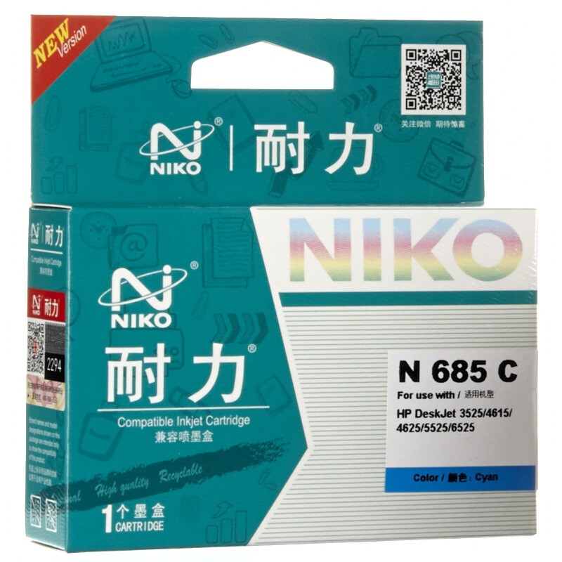 耐力(NIKO)N 685 四色墨盒套装 (适用惠普 DeskJet 3525/4615/4625/5525/6525)