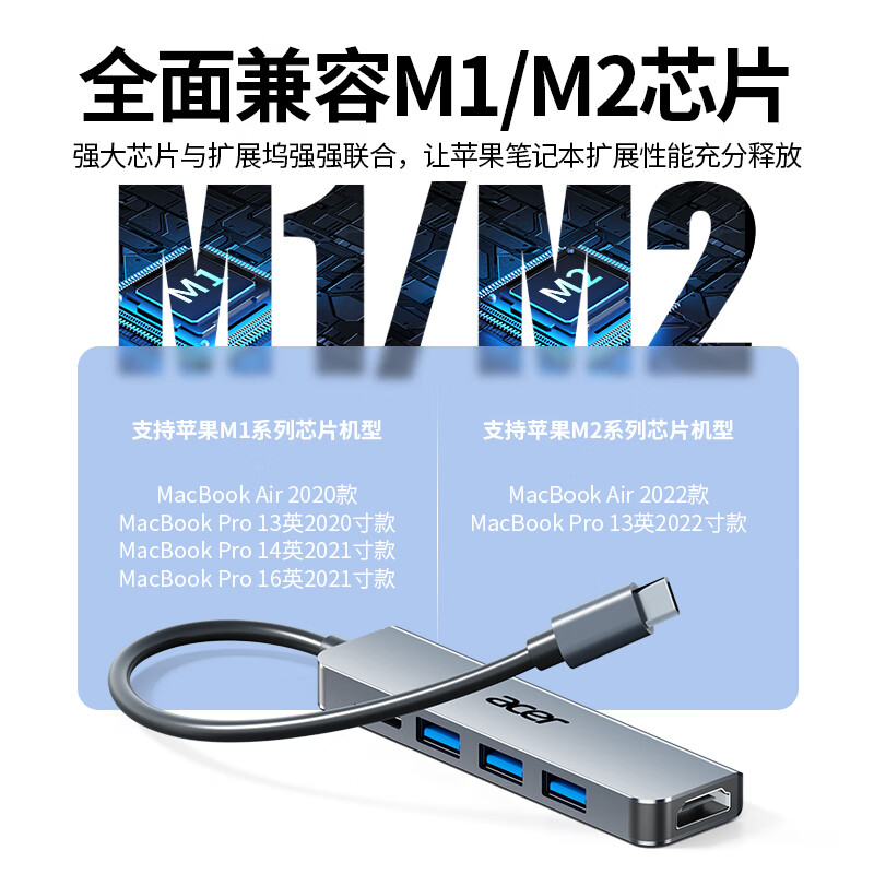 宏碁Type-C扩展坞USB-C转HDMI转接头3.0分线器适用苹果MacBook电脑转换器4K投屏PD充电拓展坞五合一