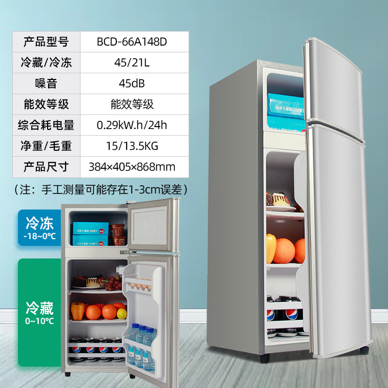 志高(CHIGO)小冰箱 冷藏冷冻双开门迷你电冰箱 节能保鲜低噪 BCD-66A148D 银色