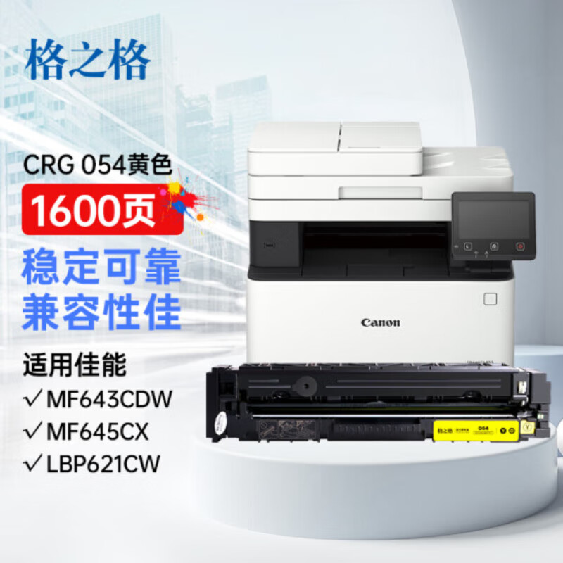 格之格crg054硒鼓适用佳能LBP621Cw MF643Cdw LBP623Cdn MF641Cw LBP623Cdw MF645Cx打印机硒鼓黄色